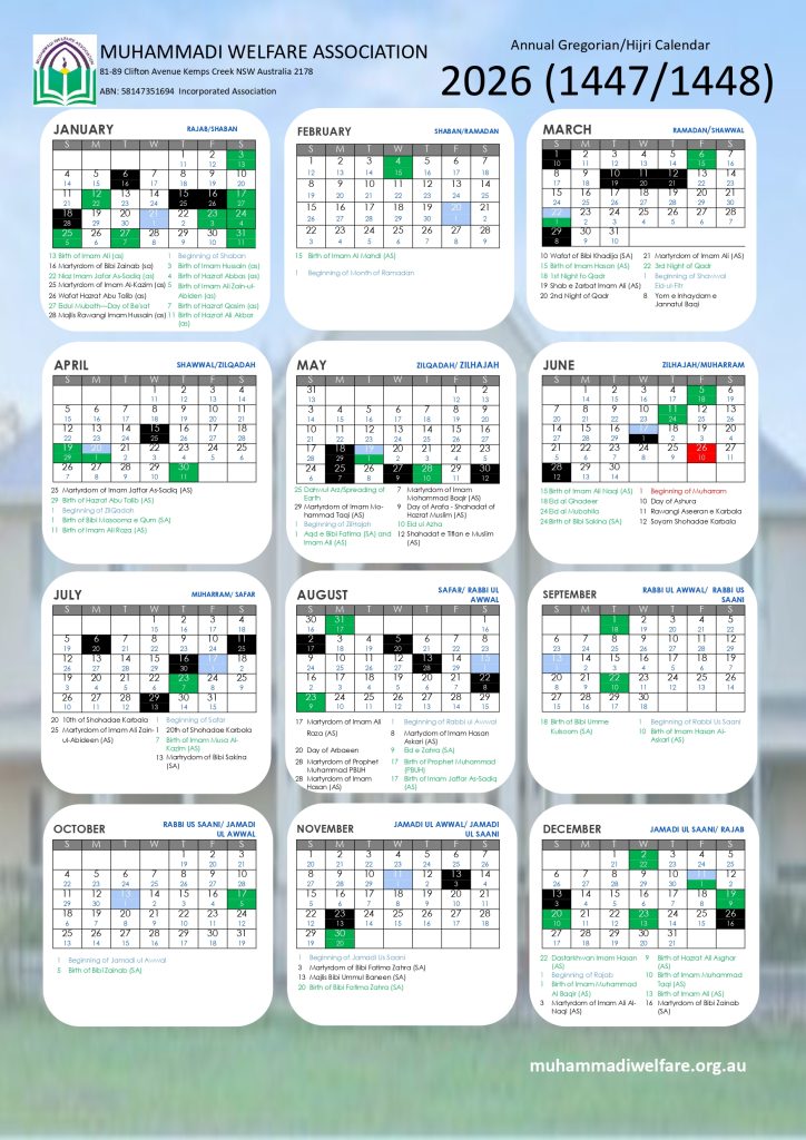 Annual Islamic Calendar For NSW, Australia 2026